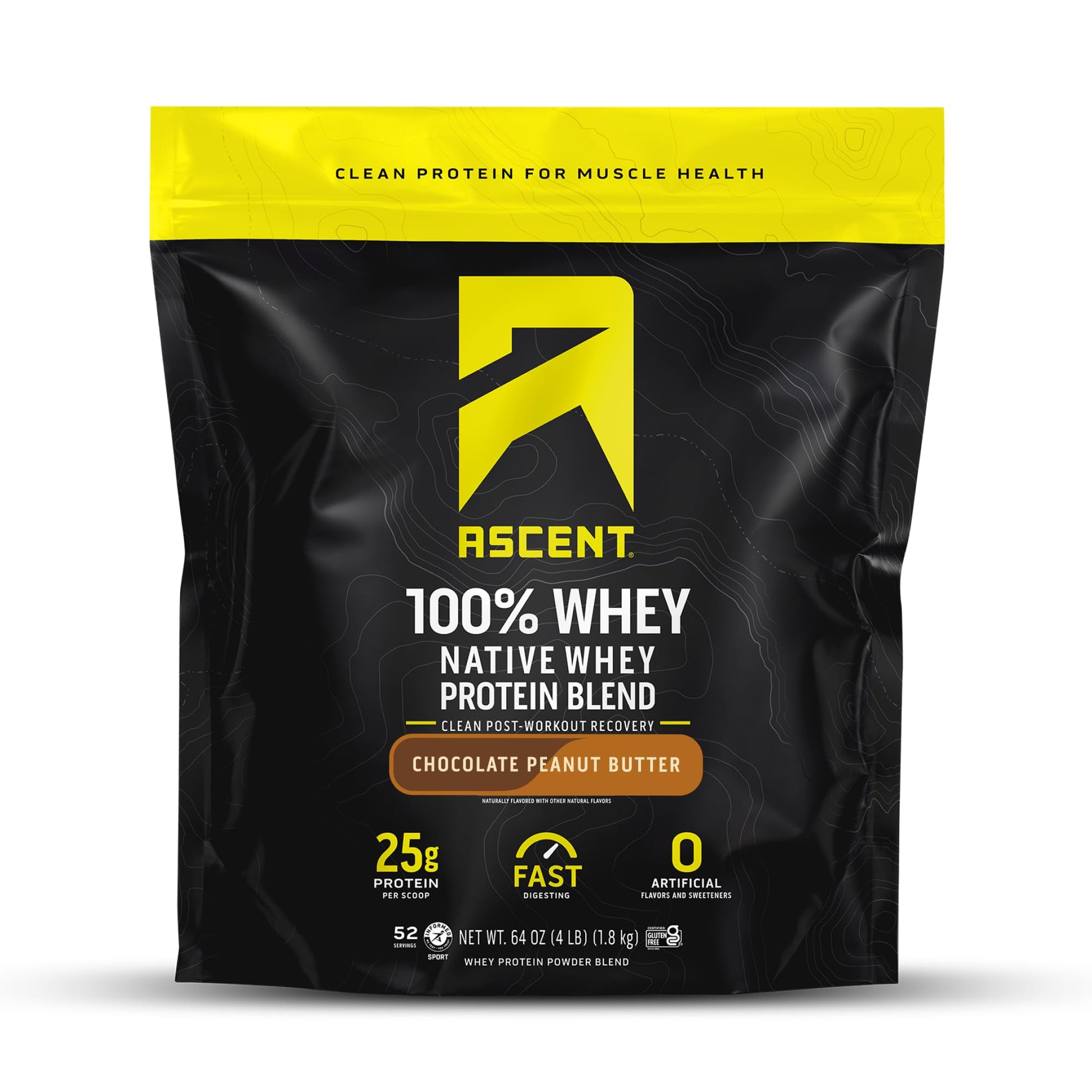 Ascent 100% Whey, Native Whey Protein Blend - Clean Post Workout Recovery, Digesting, Zero Artificial Flavors & Sweeteners, Gluten Free, 5.5g BCAA, 2.6g Leucine, Vanilla Bean 4 lb.
